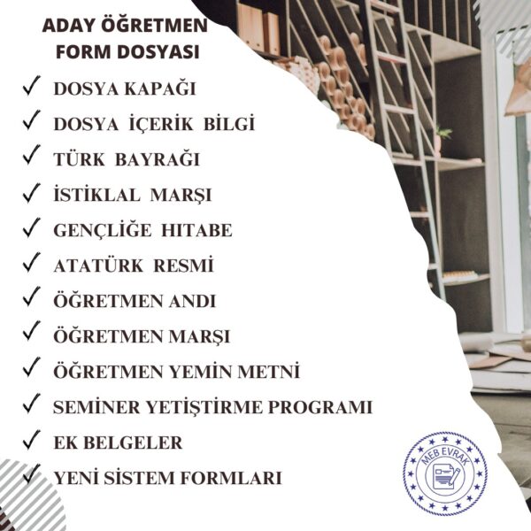 Aday öğretmen dosyaları Adaş Kitap Kırtasiye’nin 20 yıllık tecrübeleriyle hazırlanmaktadır. MEB tarafından aktarılan yönergeler doğrultusunda hazırlanan Aday öğretmen form dosyaları tarafımızca sizlere ulaştırılmaktadır.