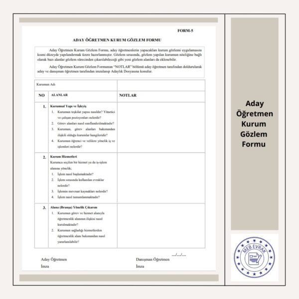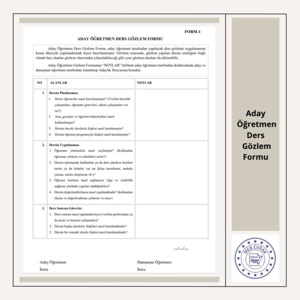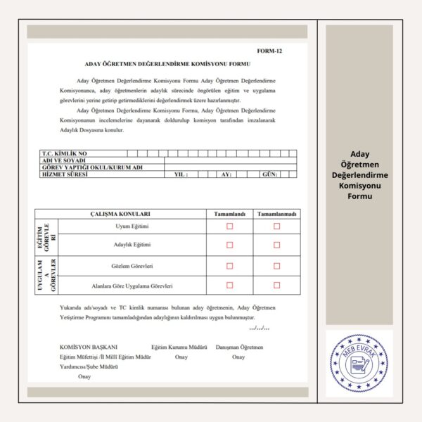 Aday Öğretmen tarafından formlar hazırlanır. Bu formlar