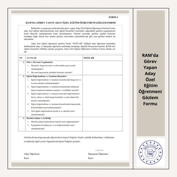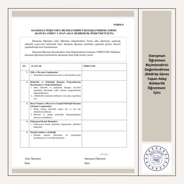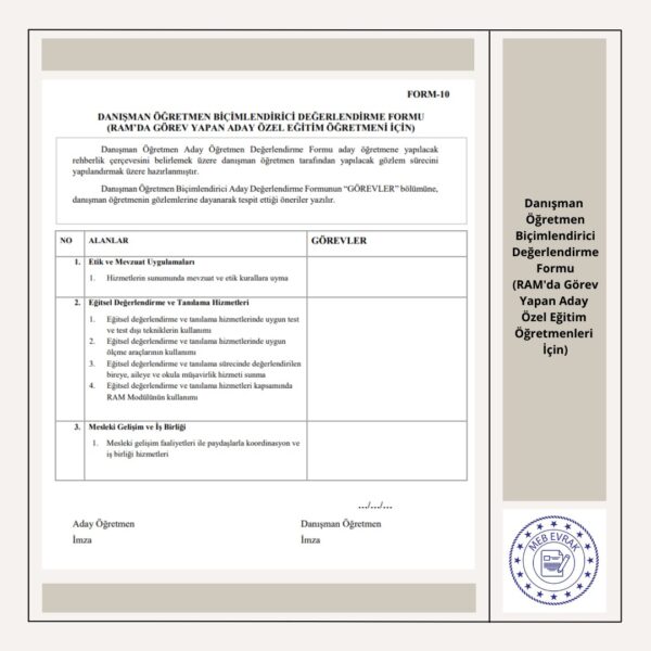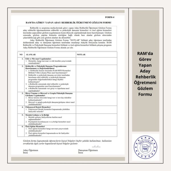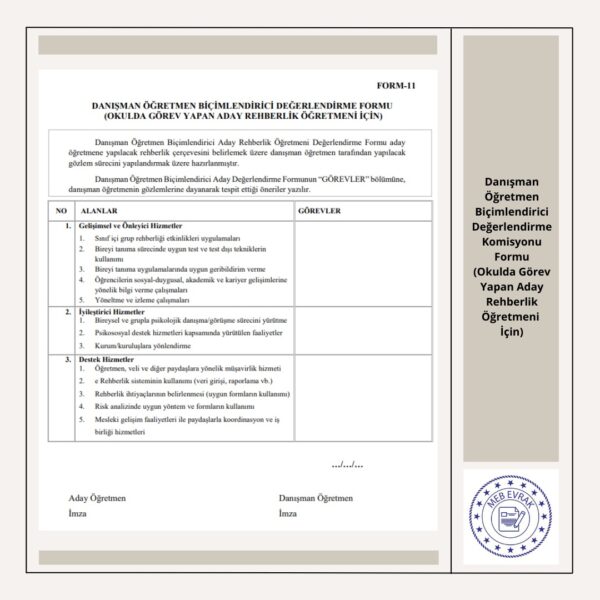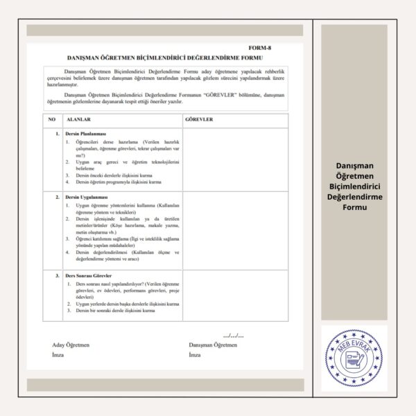 Danışman Öğretmen tarafından Danışman Öğretmen Biçimlendirici Gözlem Formu hazırlanır.