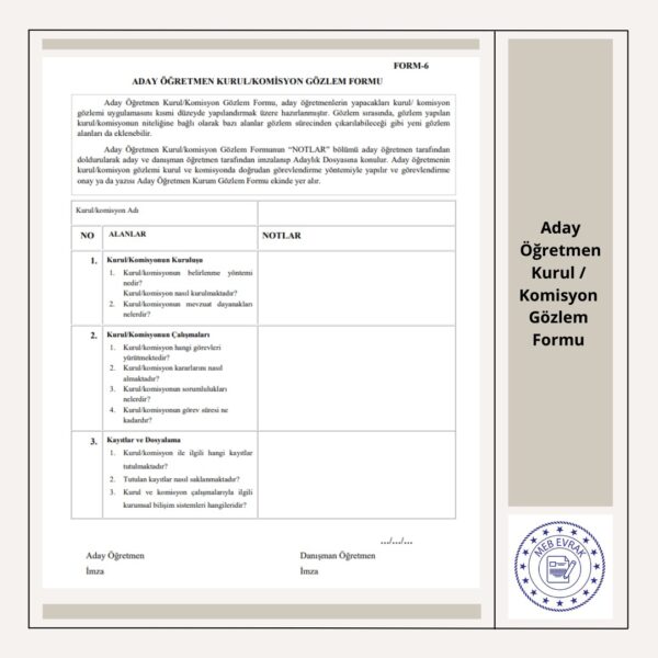 -Aday Öğretmen Kurul/Komisyon Gözlem Formu