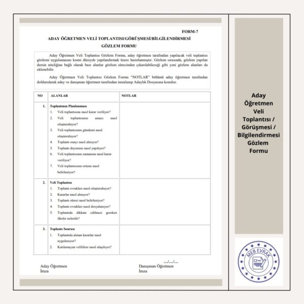 -Aday Öğretmen Veli Toplantısı/Görüşmesi/ Bilgilendirmesi Gözlem Formu